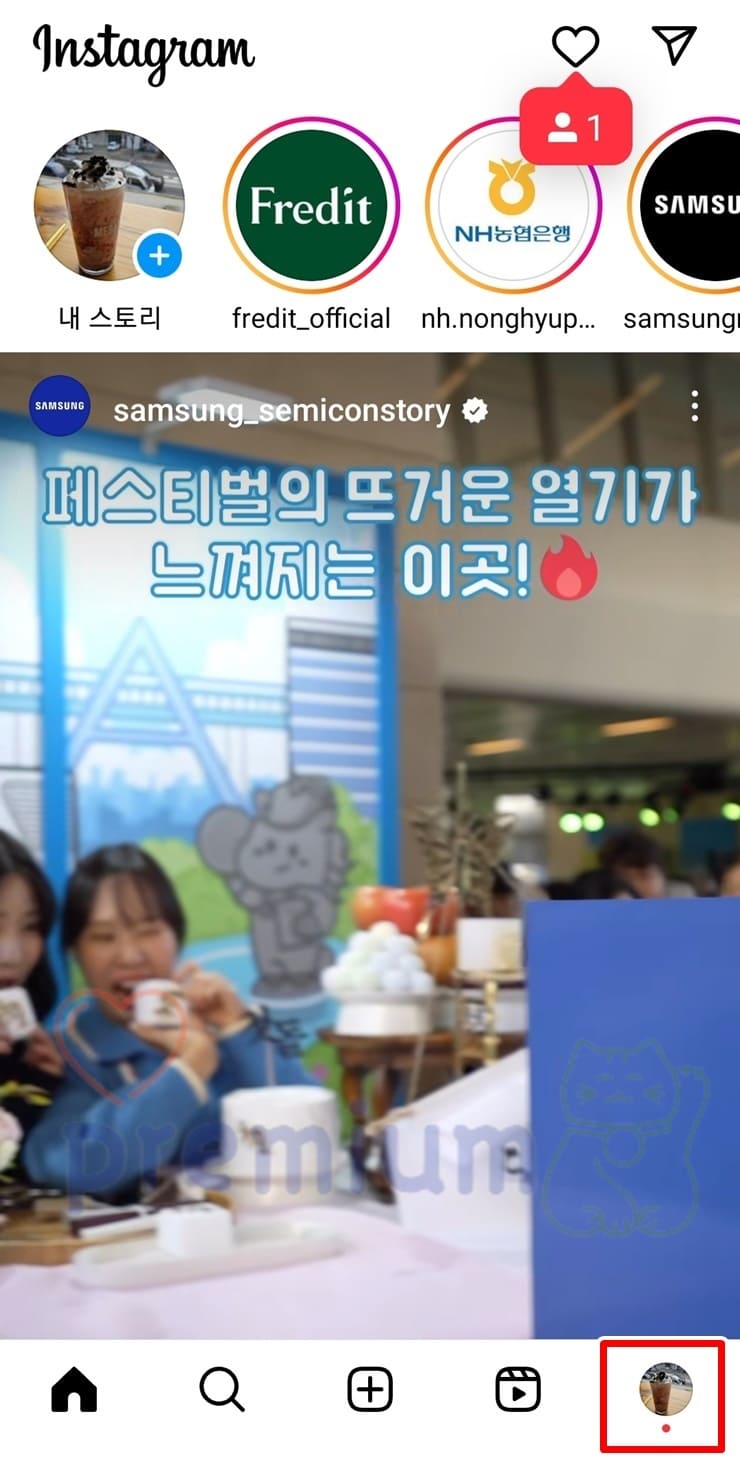 1. 인스타그램 앱을 실행합니다.