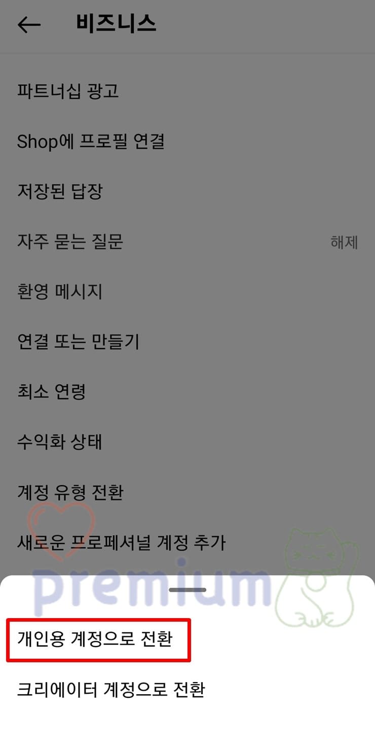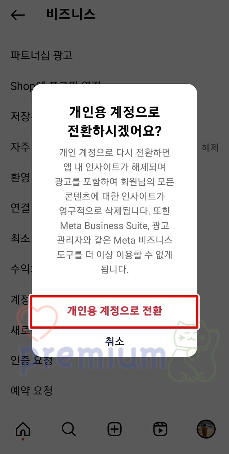 인스타그램 개인 계정 전환하기
