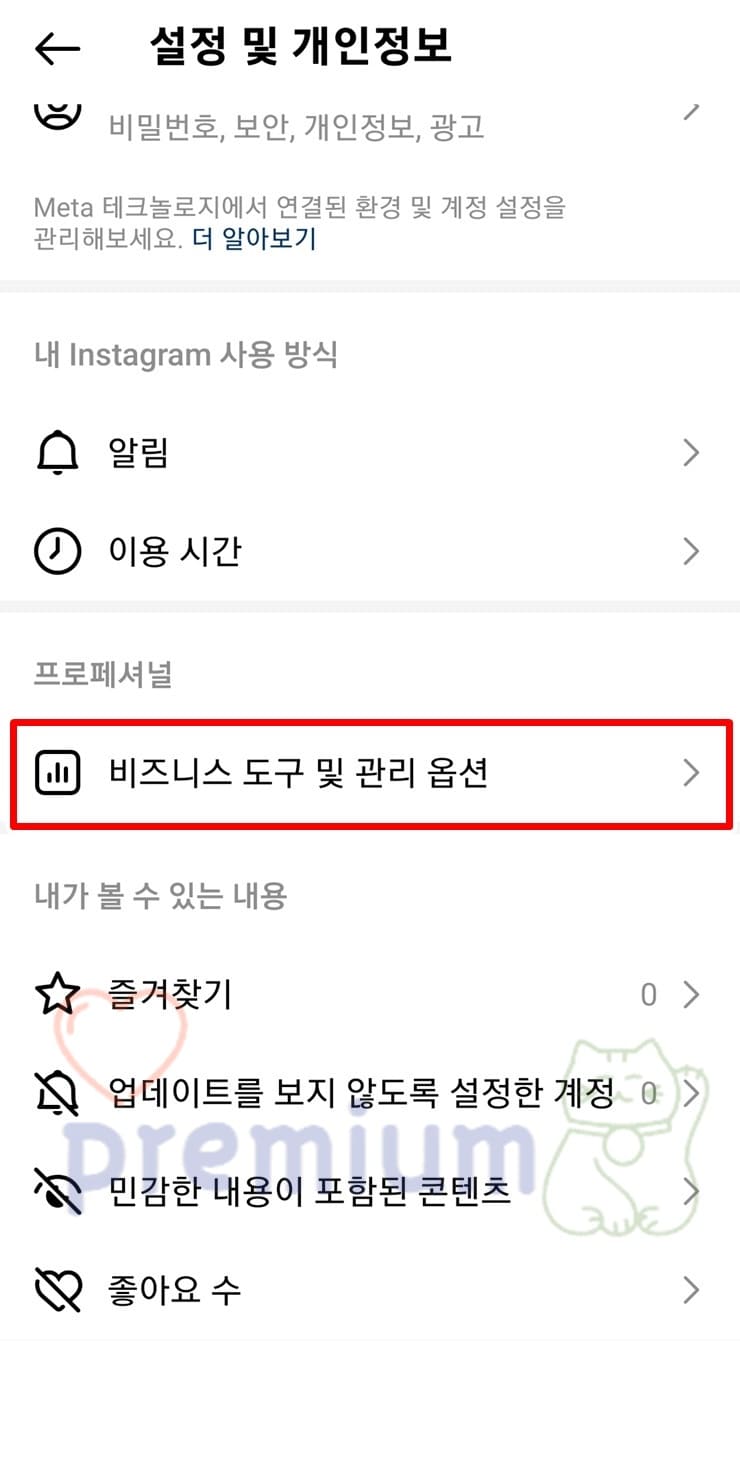 5. 프로페셔널 > 비즈니스 도구 및 관리 옵션 탭을 클릭합니다.
