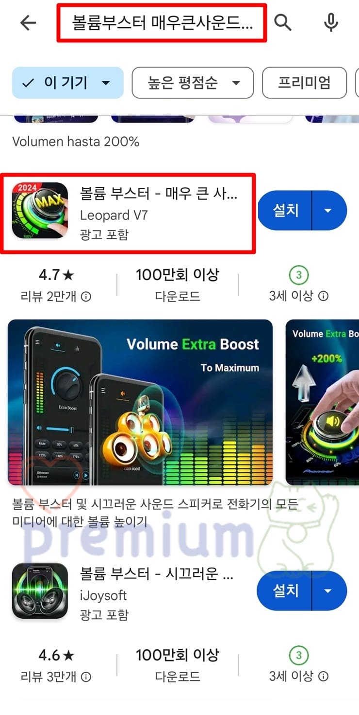 2. 돋보기창에 '볼륨부스터 매우 큰 사운드 스피커'를 입력한 후 검색합니다.