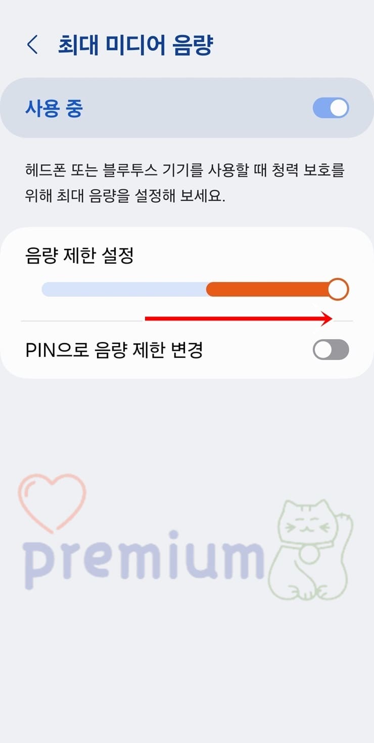 4. 음량 제한 설정 항목을 최대로 조절합니다.