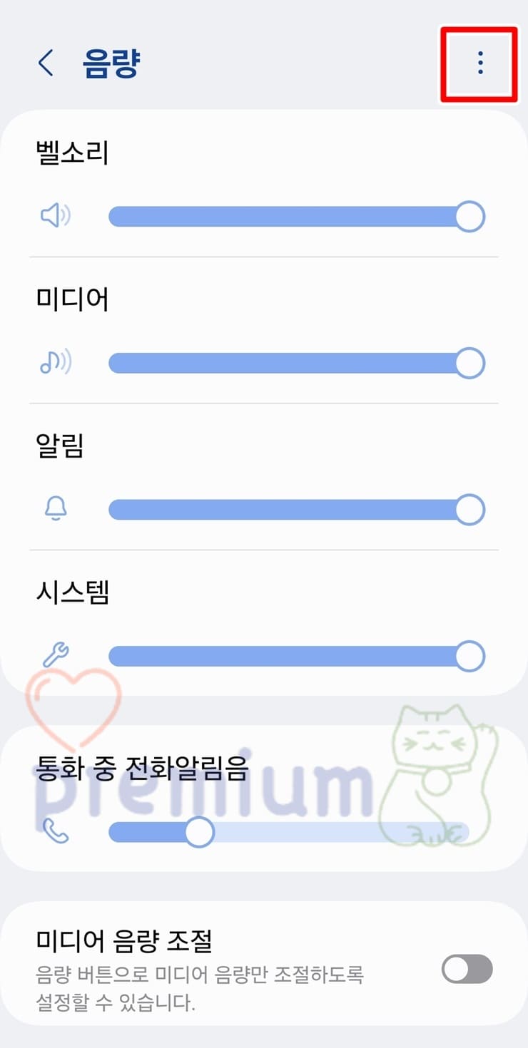 1. 음량 설정 화면 우측에 더 보기 탭을 클릭합니다.