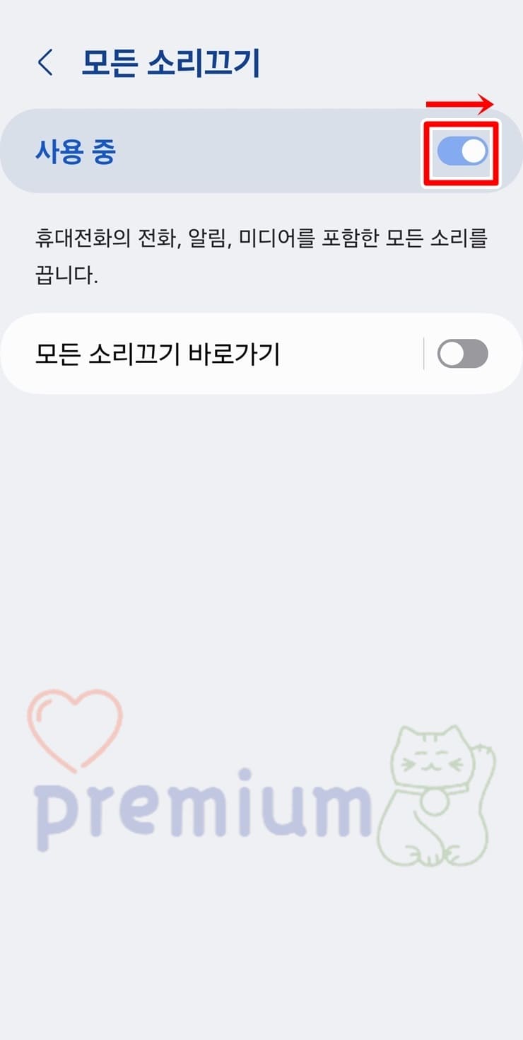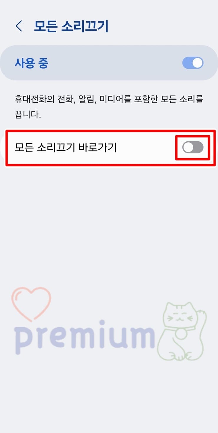 갤럭시 모든 소리 끄기 기능 해제하기