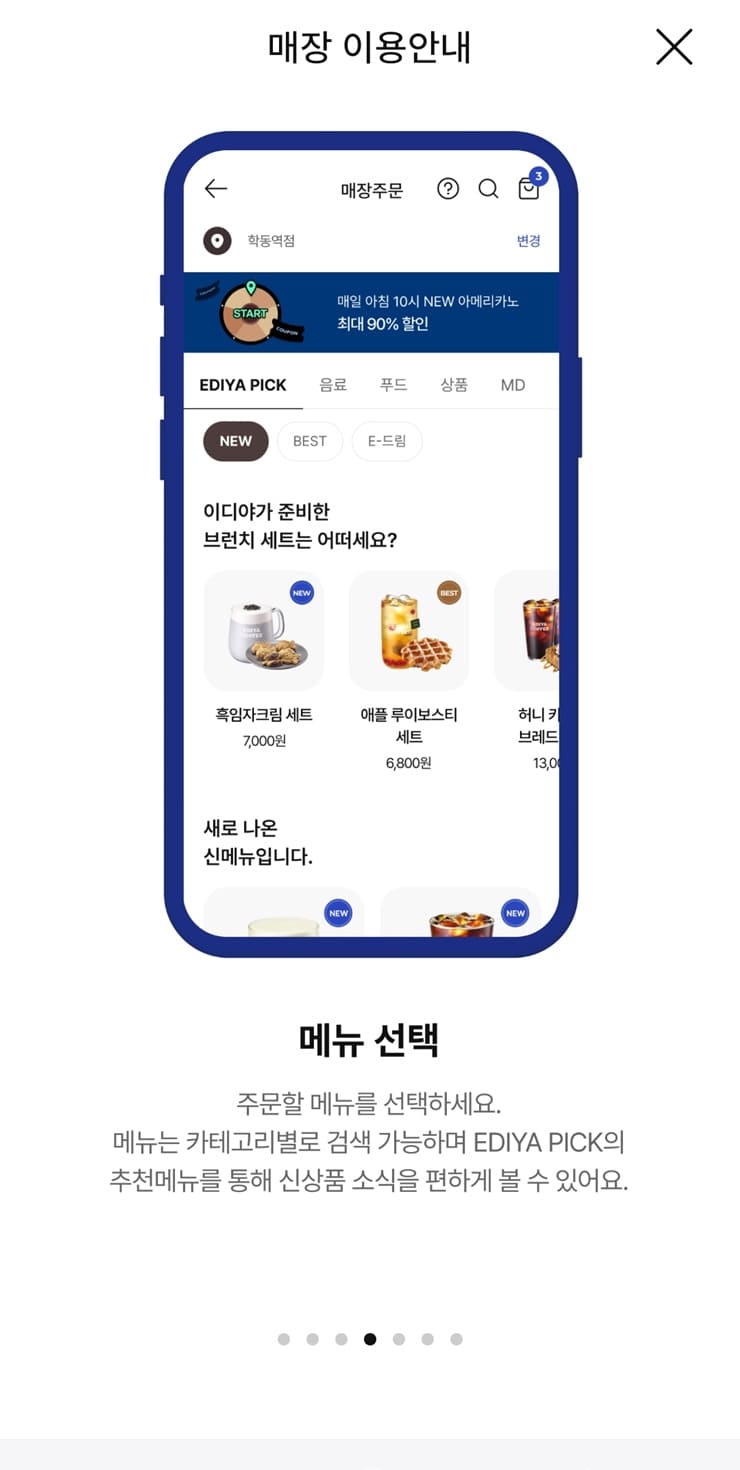👉 이디야페이 서비스 이용 가능한 메뉴가 궁금합니다.