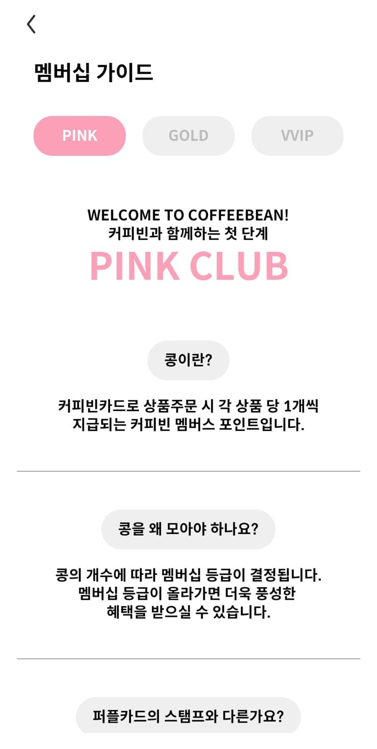 | 등급 | PINK CLUB | GOLD CLUB | VVIP CLUB |