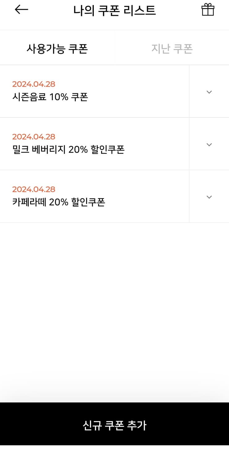 | - 생일 축하 아메리카노 쿠폰 | - 생일 추가 아메리카노 쿠폰 | ||