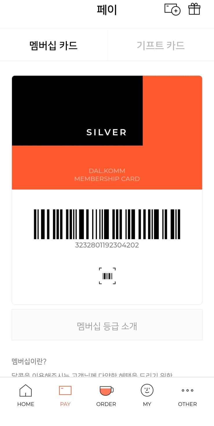 매장에서 결제하신 후 멤버십 카드 바코드를 이용해 스탬프를 적립하실 수 있습니다.