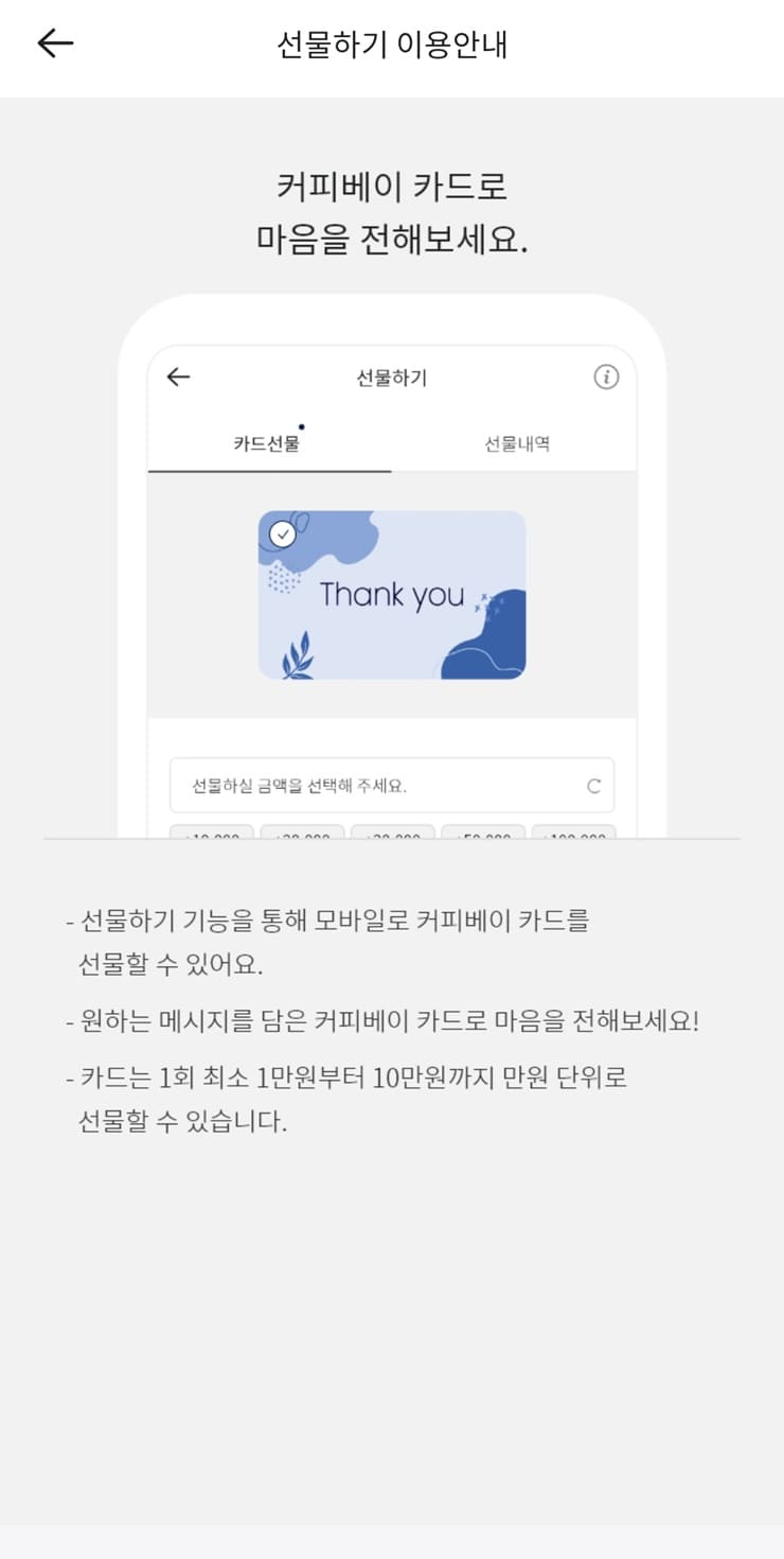 👉 선물받은 커피베이 멤버십 선불카드는 어떻게 사용할 수 있나요?