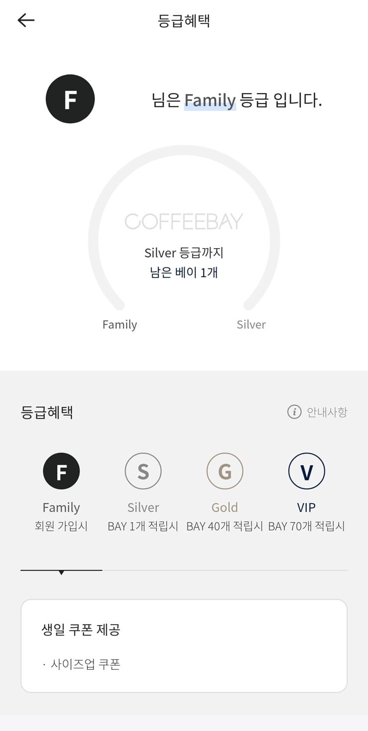Family : 커피베이 멤버십 회원 가입 시