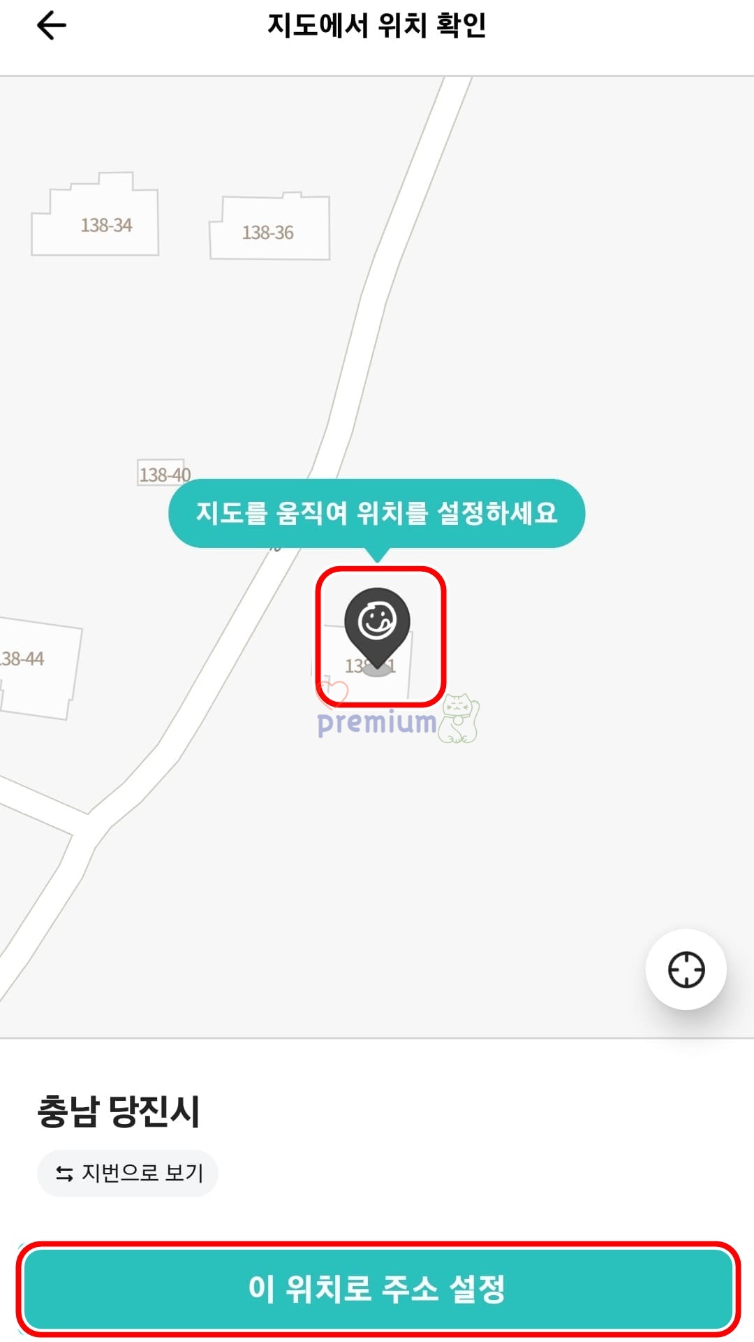 만약에 지도 아이콘이 현재 위치와 맞지 않으신 분들은 지도 아이콘을 움직여 위치를 설정하시면 됩니다. 혹시라도 지도 위치를 잘 찾지 못하신다면 아래 지번으로 보기를 클릭하셔서 현재 위치의 지번을 확인하시면서 위치를 설정하시길 바랍니다.