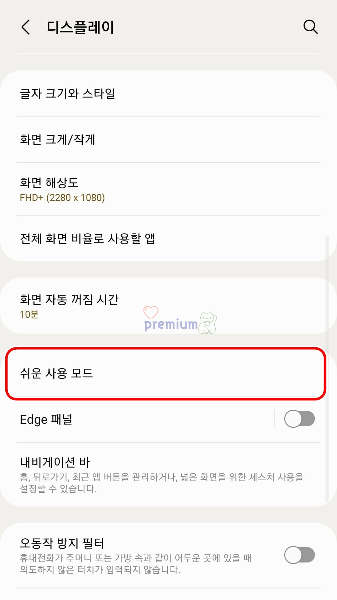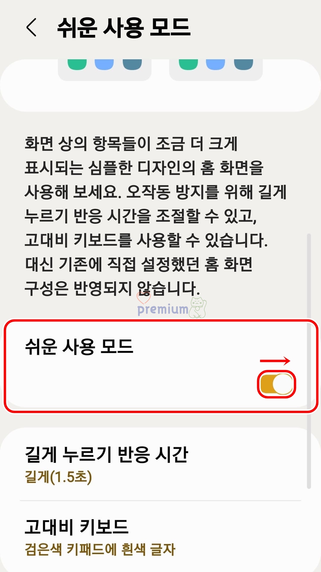 4. 쉬운 사용 모드 버튼을 활성화합니다.