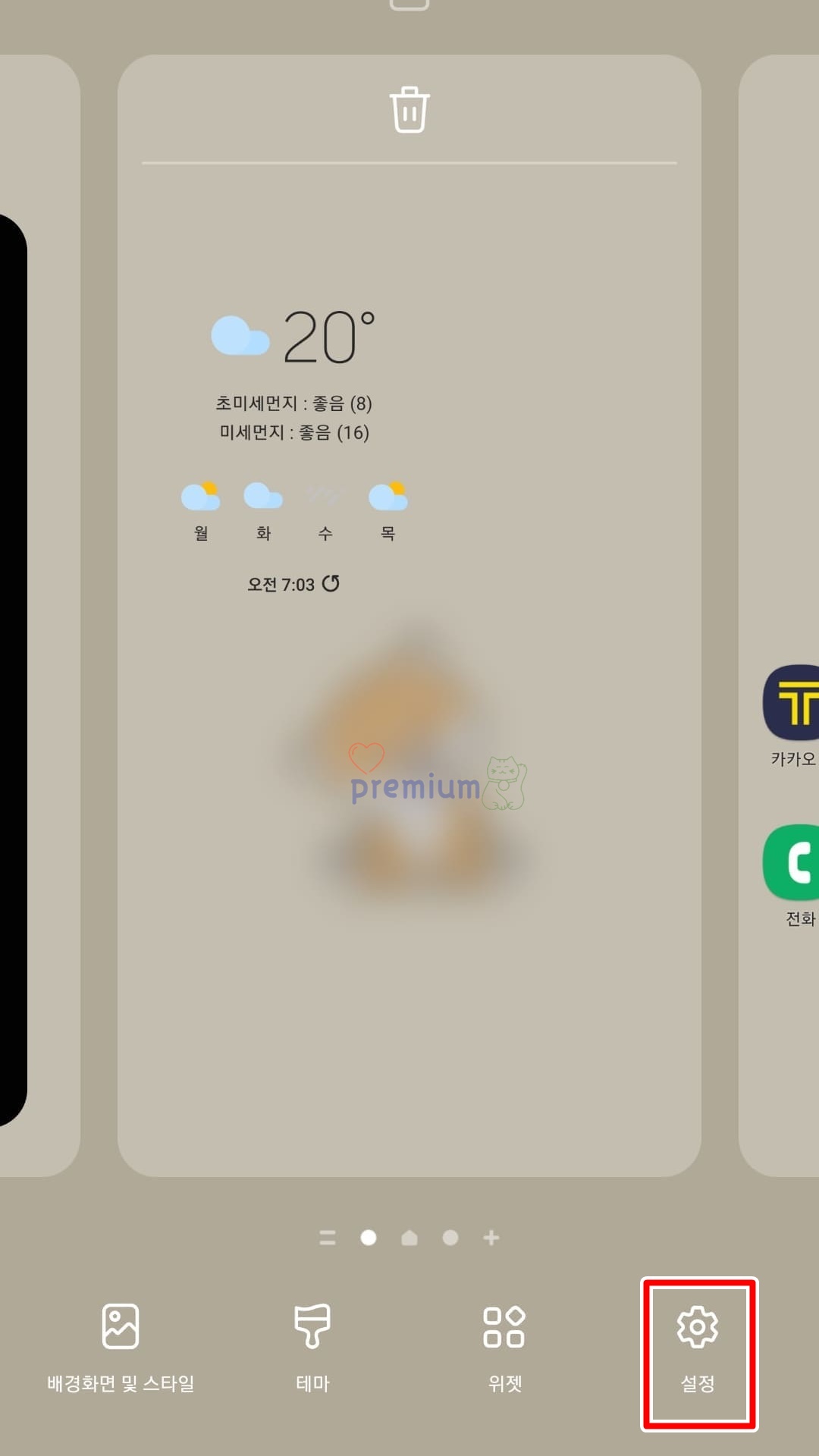 홈 화면을 2초 정도 꾹 누르시면 아래 사진처럼 편집 기능이 표시됩니다.