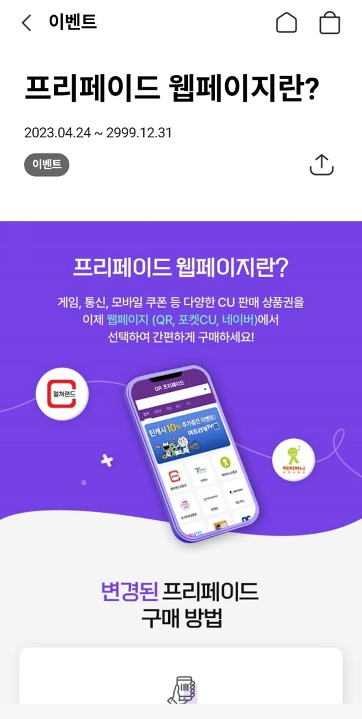 [포켓 CU APP > 하단 'QR' > QR코드를 통한 CU멤버십 포인트 적립/사용]