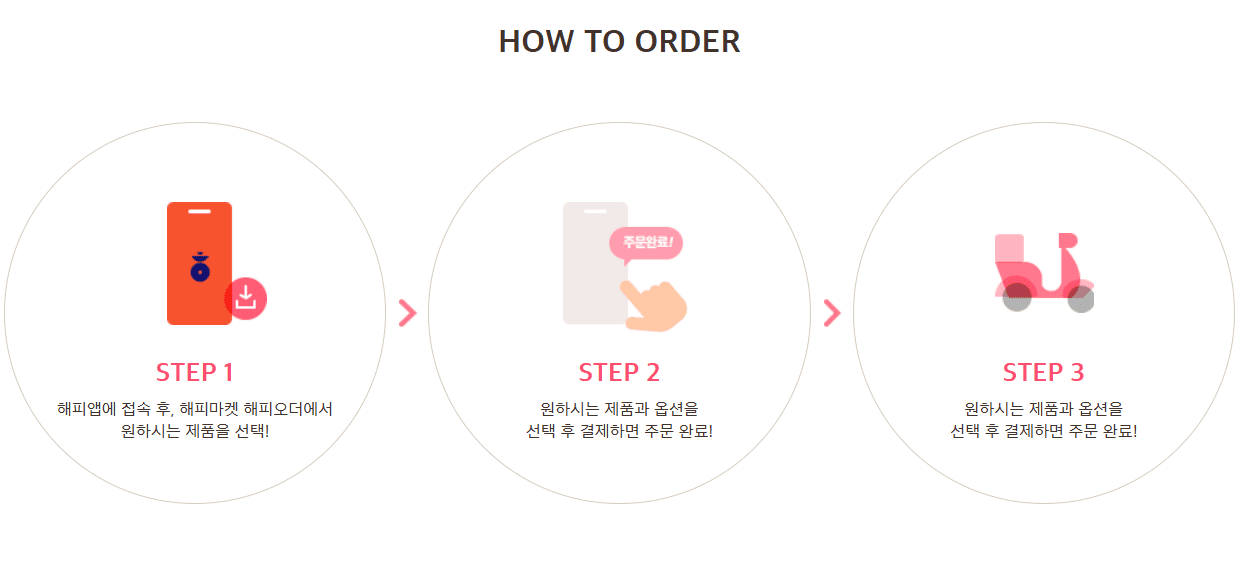 해피오더 채널에서 배달/픽업 주문 후 모바일교환권 결제가 가능합니다.