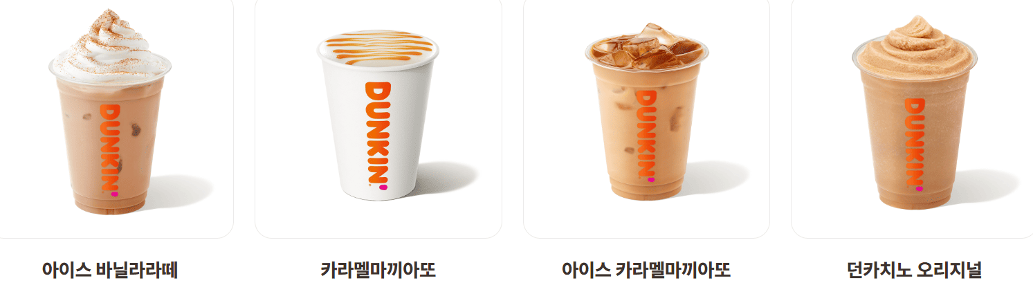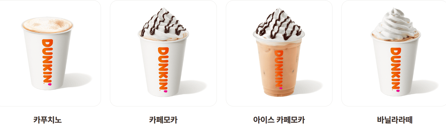 | 던카치노 오리지널 | 4,900 | 300 | 바닐라 시럽 + 우유 + 에스프레소 |