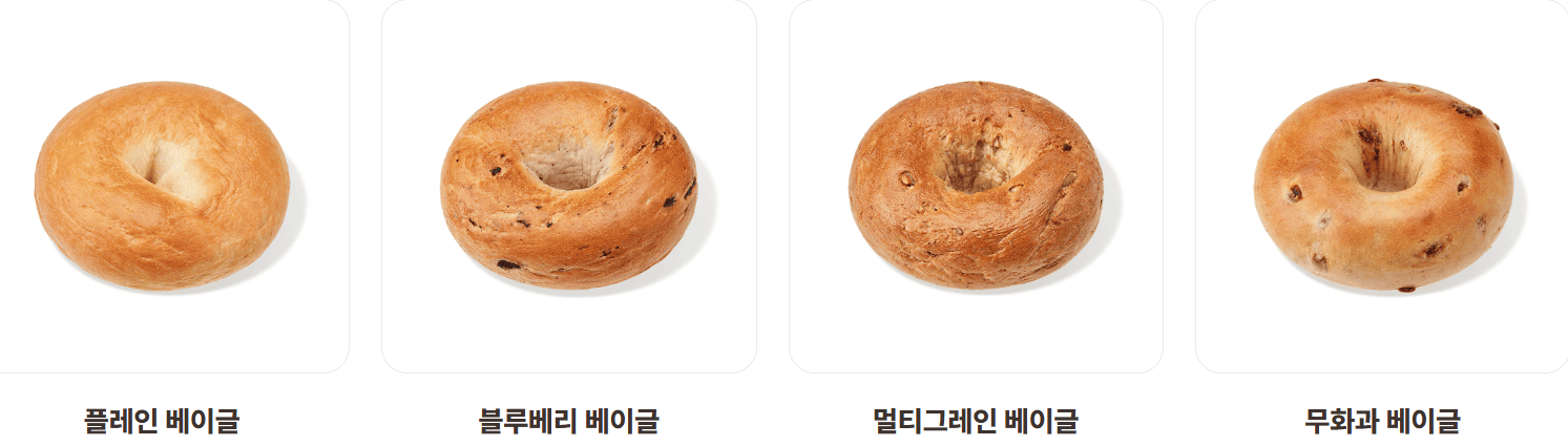 | 블루베리 베이글 | 2,500 | 325 | 블루베리 맛 |