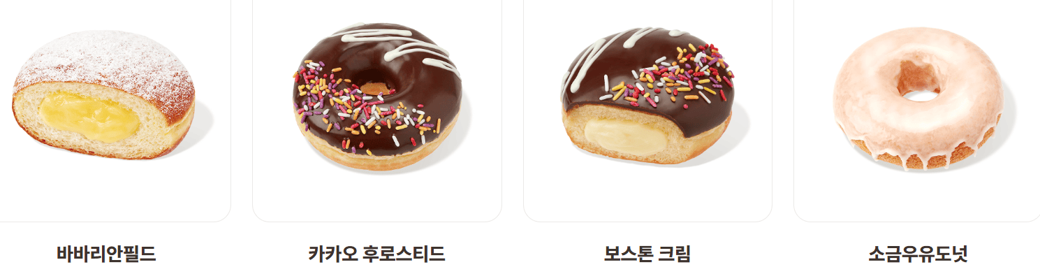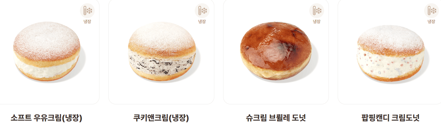 | 팝핑캔디 크림도넛 | 3,700 | 400 | 우유크림 + 팝핑 캔디 |