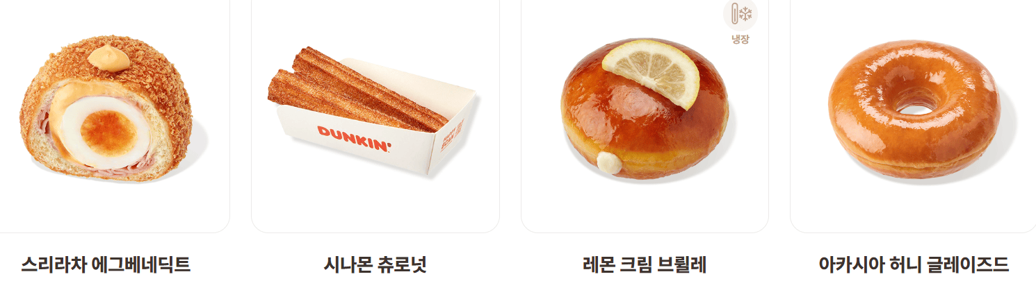 | 던킨 랩 샌드위치 (치킨텐더) | 6,500 | 310 | 또띠아 + 치킨텐더 + 치즈 + 야채 + 홀그레인머스타드 소스 |