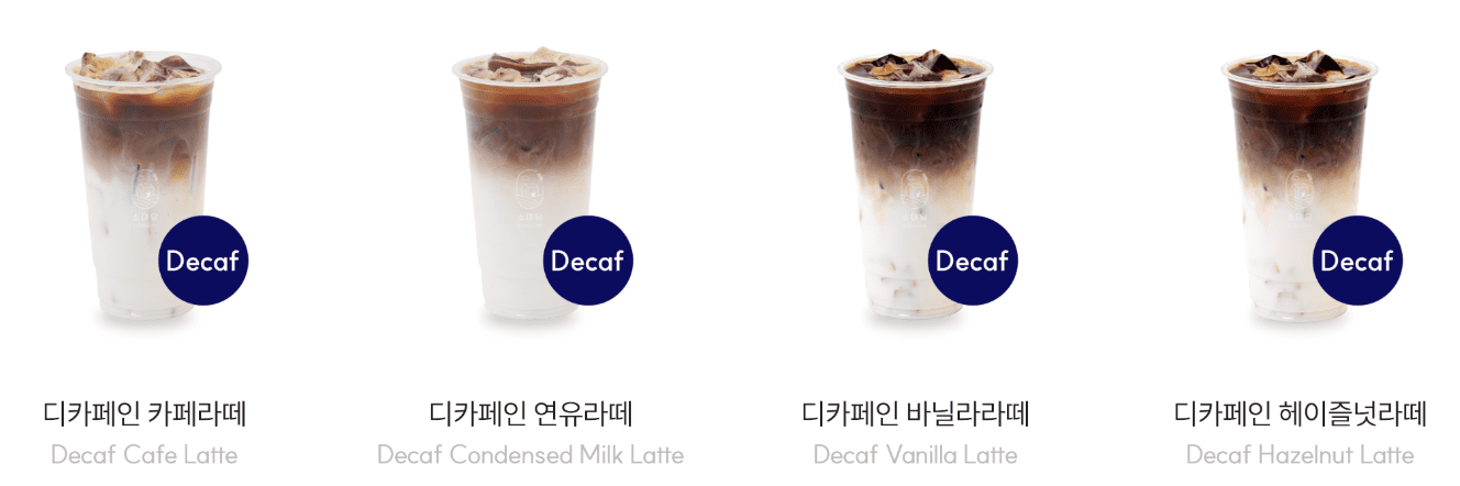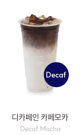 | 디카페인 카페라떼 | 3,900 | 디카페인 에스프레소 샷 + 우유 |
