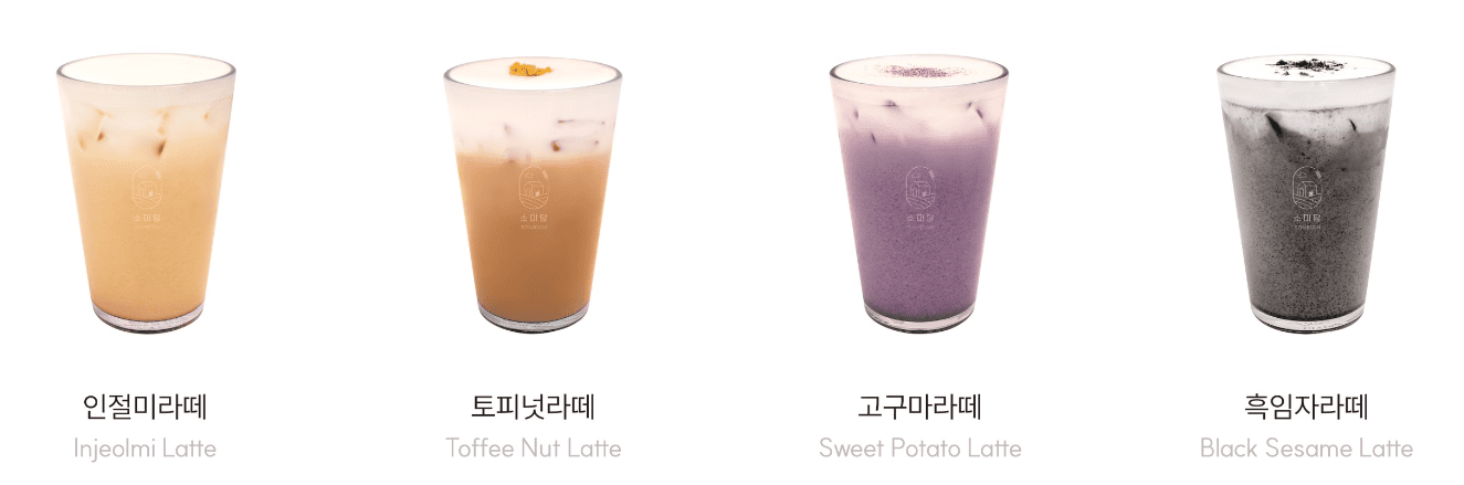 | 흑임자 라떼 | 3,900 | 흑임자 가루 + 우유 |