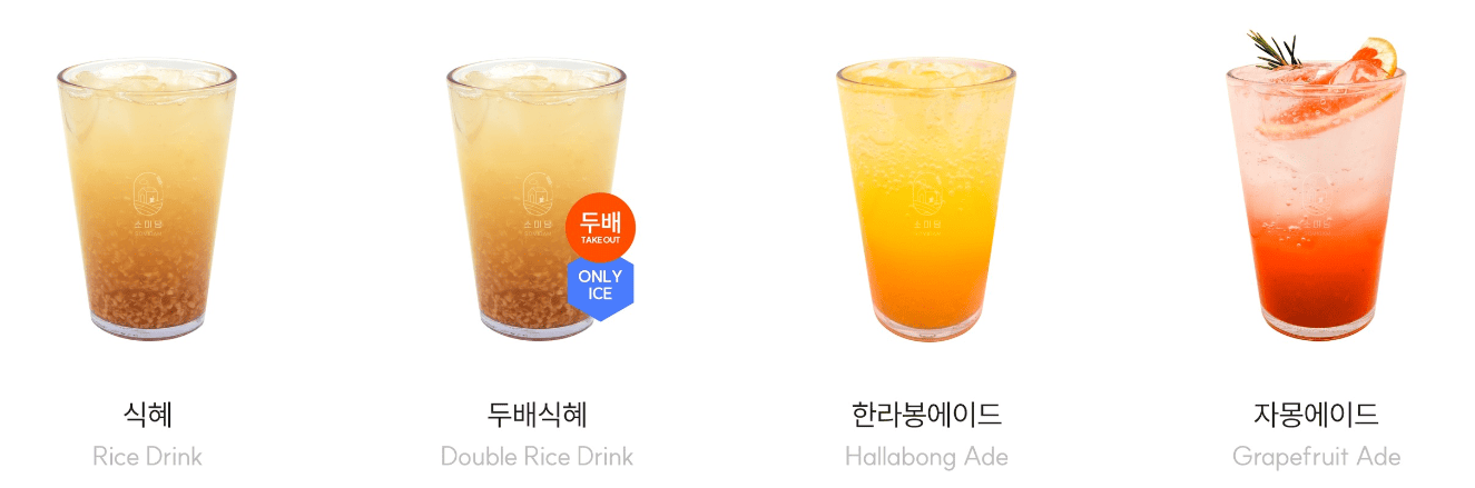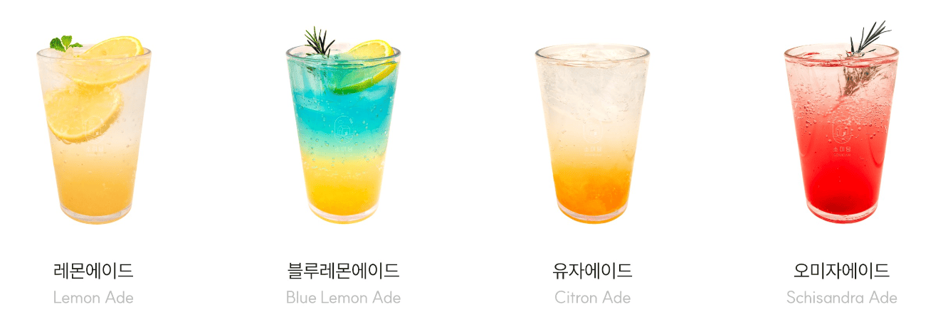 | 오미자 에이드 | 3,800 | 오미자 + 탄산수 |