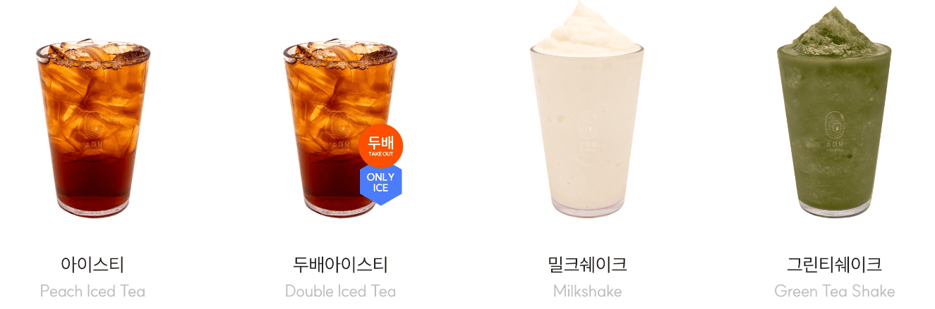 | 아이스티 | 3,000 | 홍차 + 복숭아 |