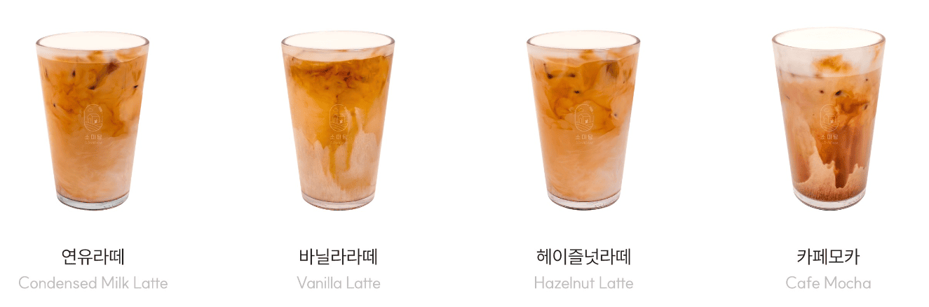 | 헤이즐넛 라떼 | 3,200 | 헤이즐넛 + 우유 |
