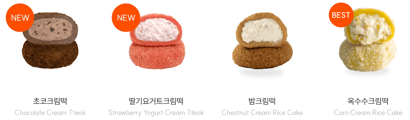 | 옥수수 크림떡 | 1,600 | 떡 + 생크림 + 크림 치즈 + 옥수수 알갱이 |