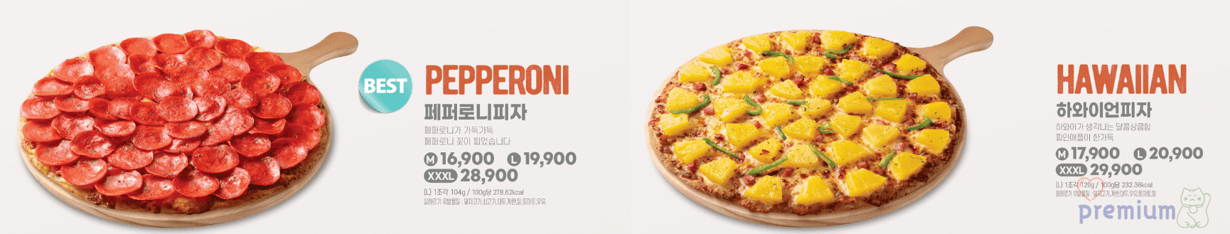 | M | 16,900 | 268.7 | 다양한 토핑 |