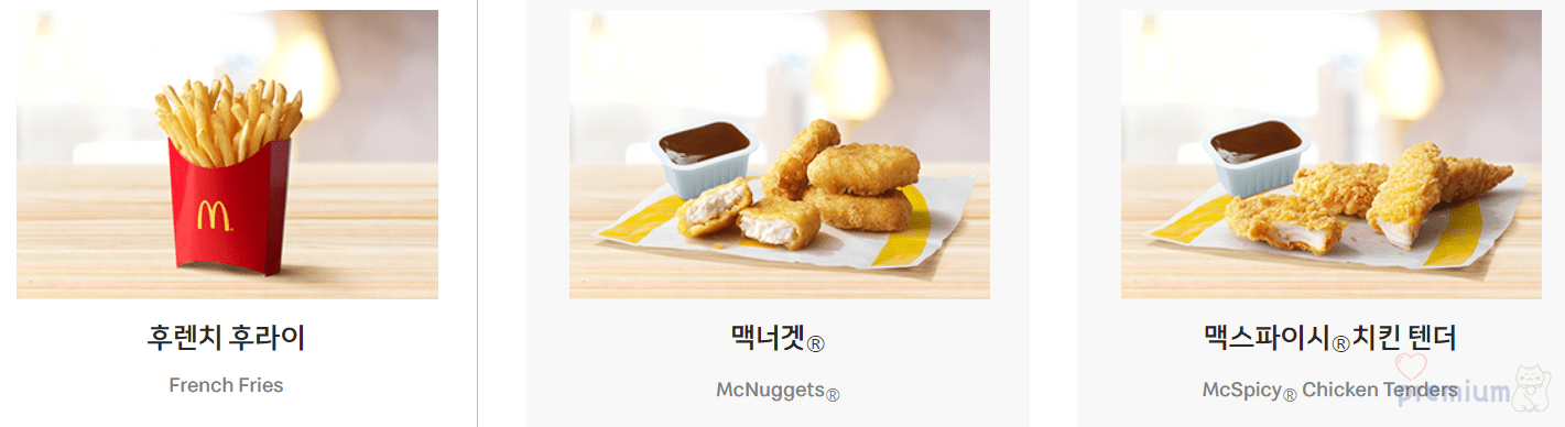 | 맥스파이시 치킨 텐더 | 3,700원 | 부드러운 100% 닭안심살 |